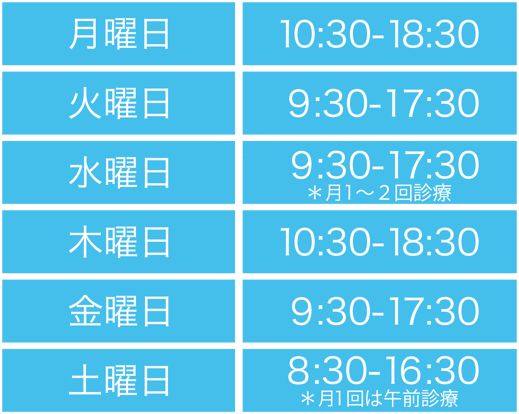 | 日 | 月 | 火 | 水 | 木 | 金 | 土 |